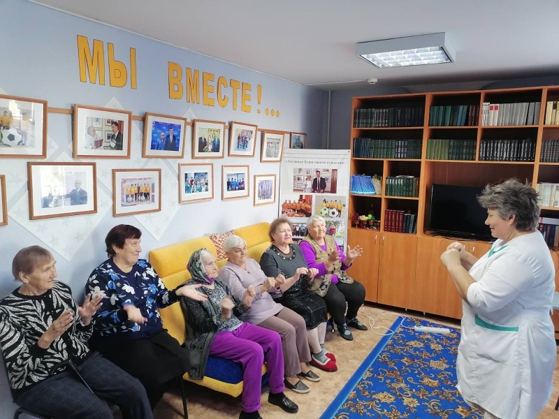 Фельдшер отделения «Специализированный жилой дом для граждан пожилого возраста и инвалидов» Беляева М.И. провела с жителями отделения фитнес час «Упражнения для долголетия» по обучению основам самомассажа.