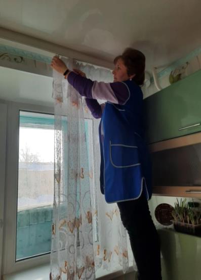 Социальные работники и медицинские сестры отделений социально-бытового обслуживания на дому № 3 и социально-медицинского обслуживания на дому провели акцию по уборке в домах получателей социальных услуг перед Пасхой «Чисто в доме, легко на душе».